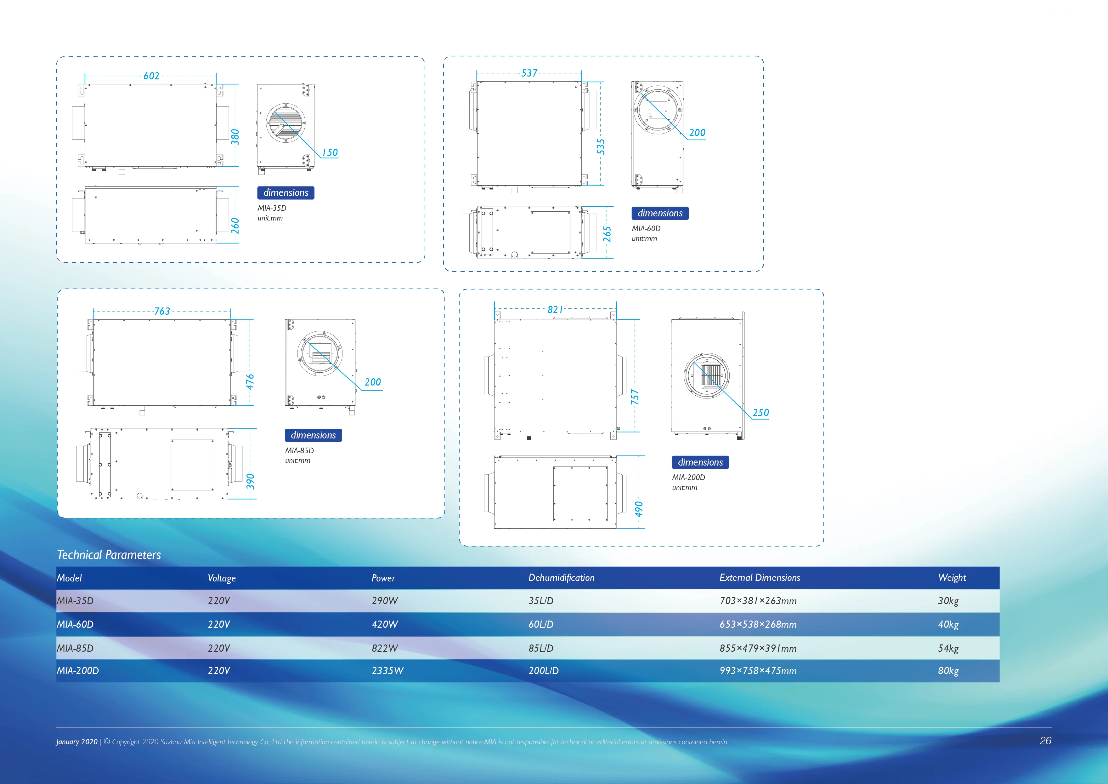 Mia Industrial Dehumidifier Factory Laboratory Ventilation System MIA-80XF