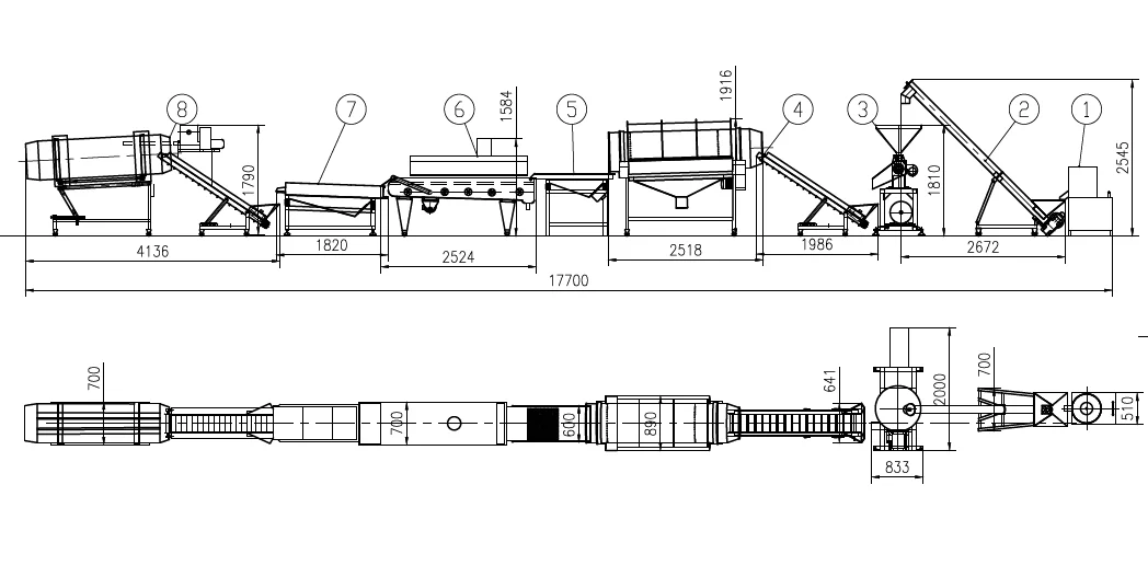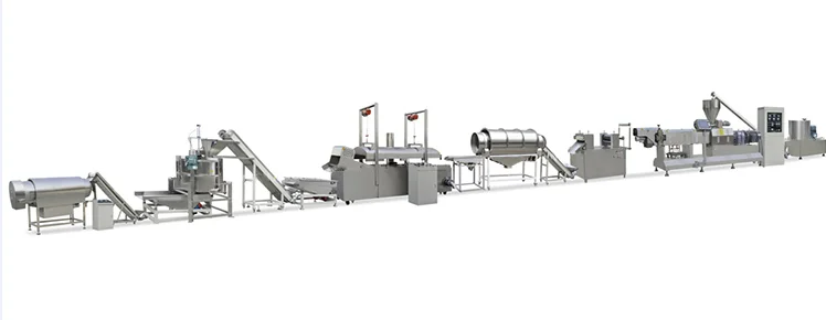3 | Processing flow | Mixer--Screw Conveyor-- Double-screw Extruder --shaping machine --Separate Drum--material distributor-- Fryer-- De-oil Machine--Flavoring Line |