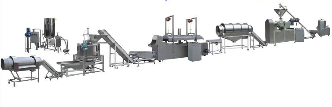 4 | Equipment involved | Mixer; Screw elevator; Double screw extruder; Air conveyor; Dryer; Flavoring system;Packing machine |