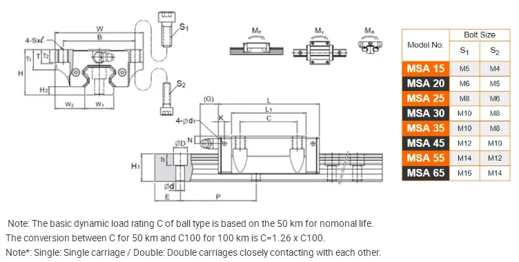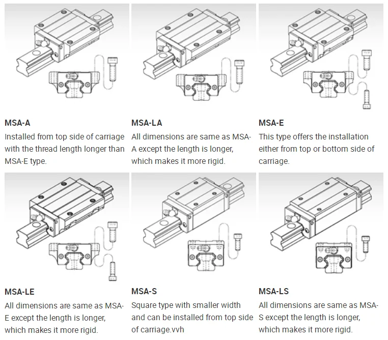 PMI Linear Guide MSA15E Linear Rail Block MSA20E MSA25E MSA30E MSA35E MSA45E MSA55E MSA65E