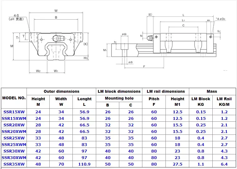 THK Linear Rail Block SSR15XW1UU Linear Guideway Slide Block