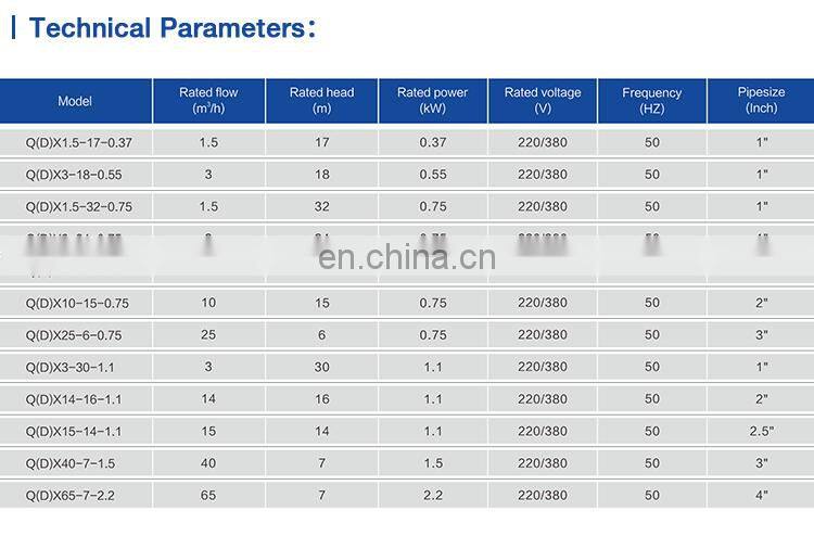 Home > Products > Submersible pump > 0.5hp 0.75 hp Specification of Centrifugal Submersible Water Pump