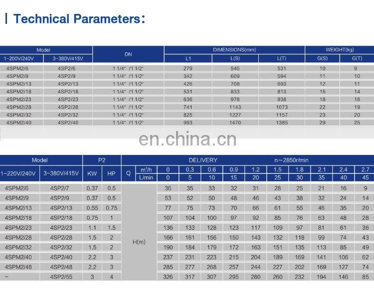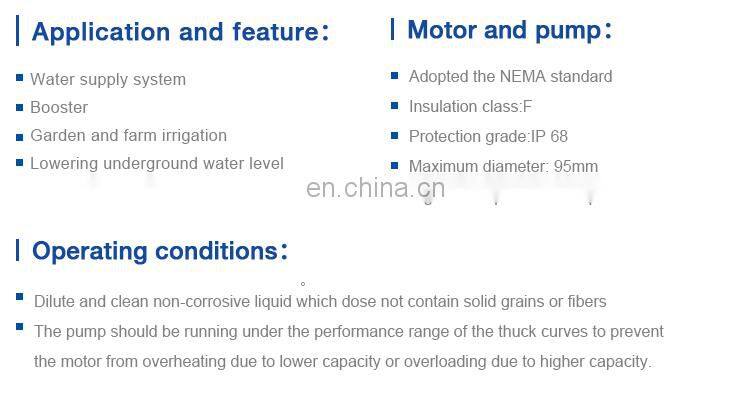 220 Volt 1hp 1.5hp 3hp Submersible Deepwell Water Pump Specifications