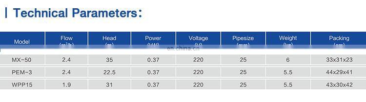 QB Series Specifications 0.75kw 1hp Water Pump for House