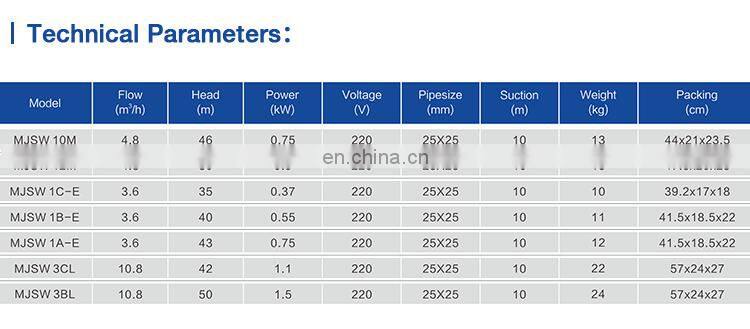 QB Series Specifications 0.75kw 1hp Water Pump for House