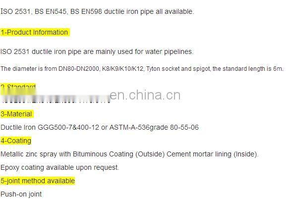 ISO2531 DUCTILE IRON PIPE AND FITTINGS
