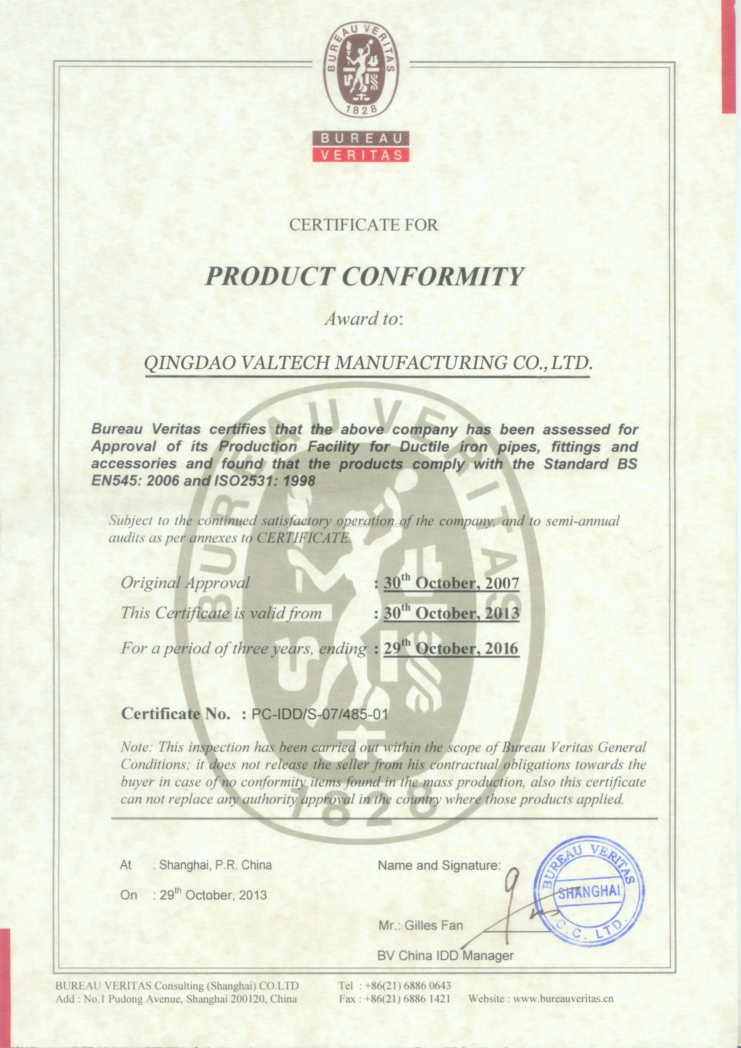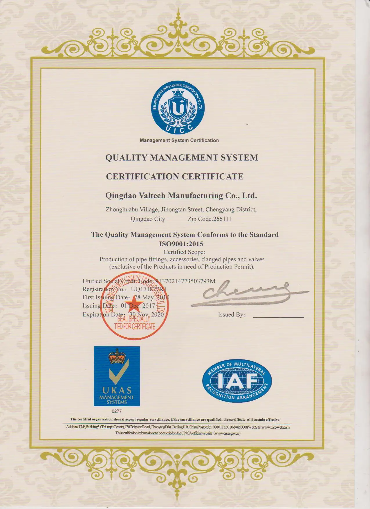 QINGDAO VALTECH MANUFACTURING CO., LTD is a professional ductile iron pipe fittings manufacturer in China, established in 1995, with more than 90 employees,monthly capacity 600tons and ISO9001:2015 certificate.