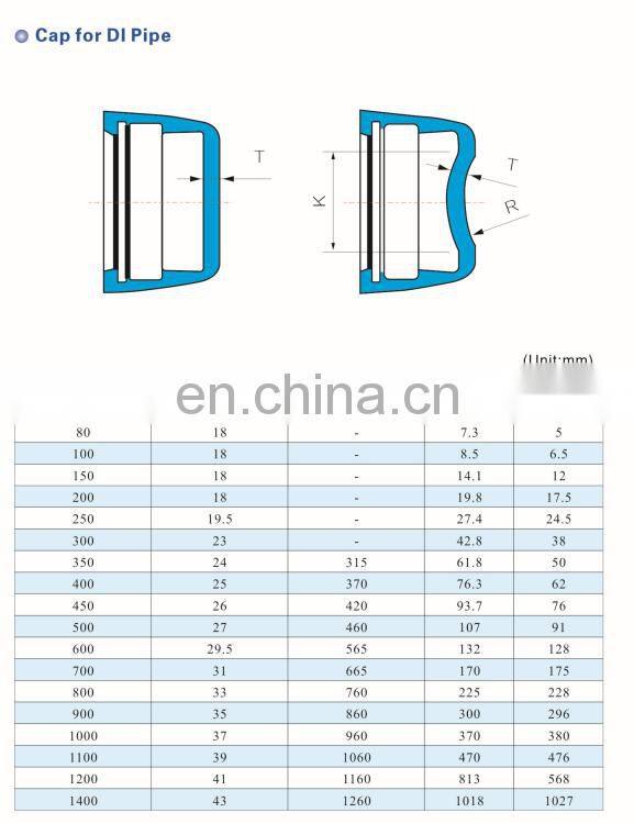 Ductile Iron Fusion Bonded Epoxy Ductile Iron Cap for DI Pipe