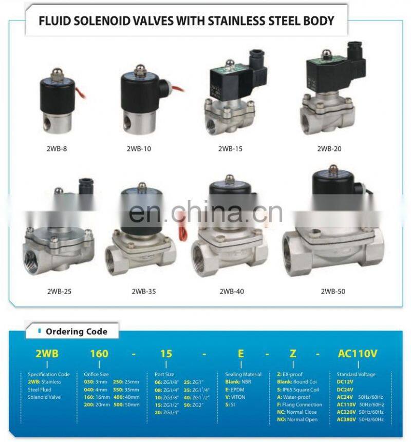 Home > Products > Solenoid valve > 2WB20-NO Medium Pressure 24V DC Normally Open Stainless Steel Solenoid Valve