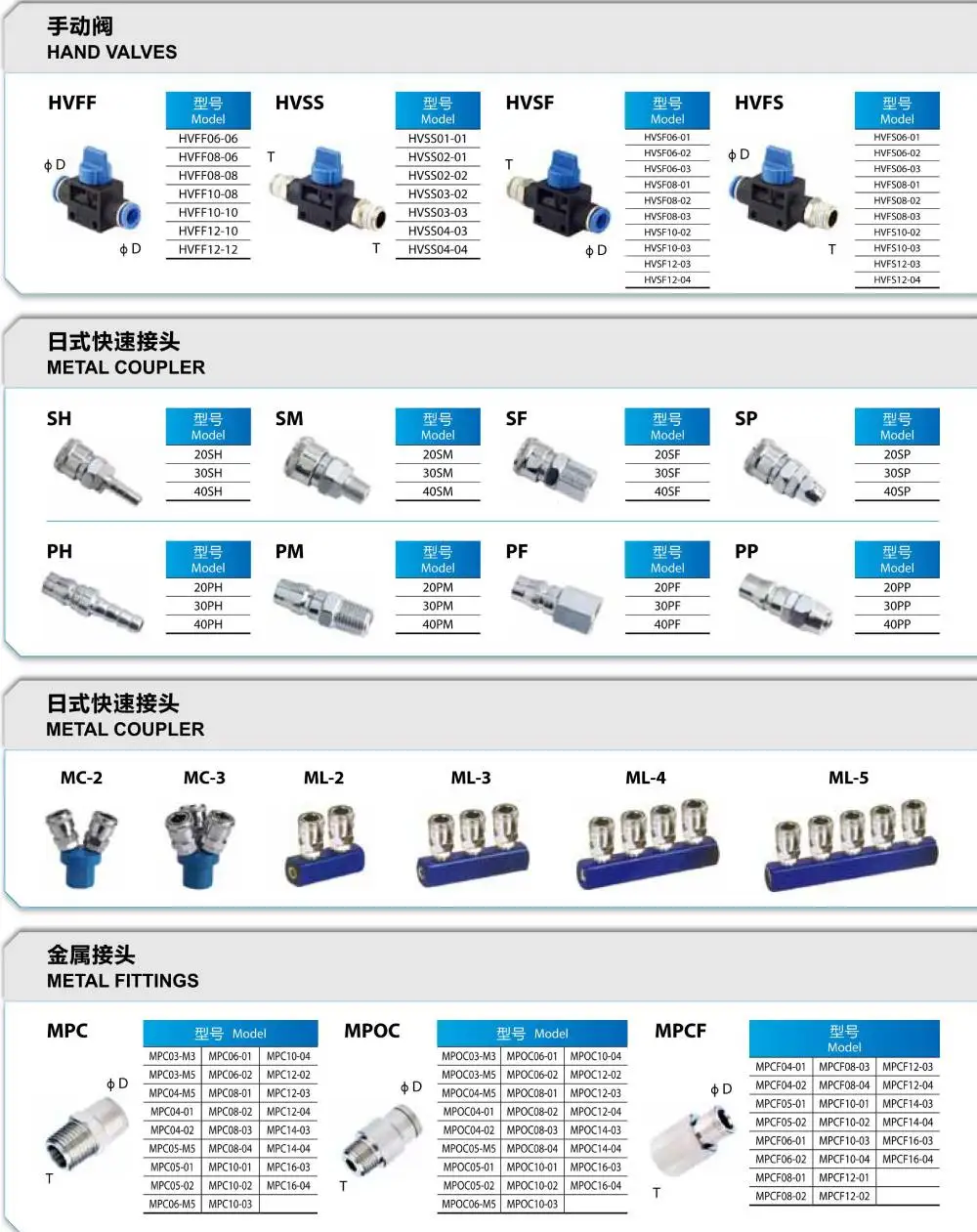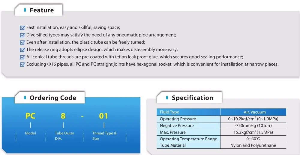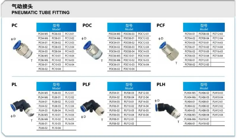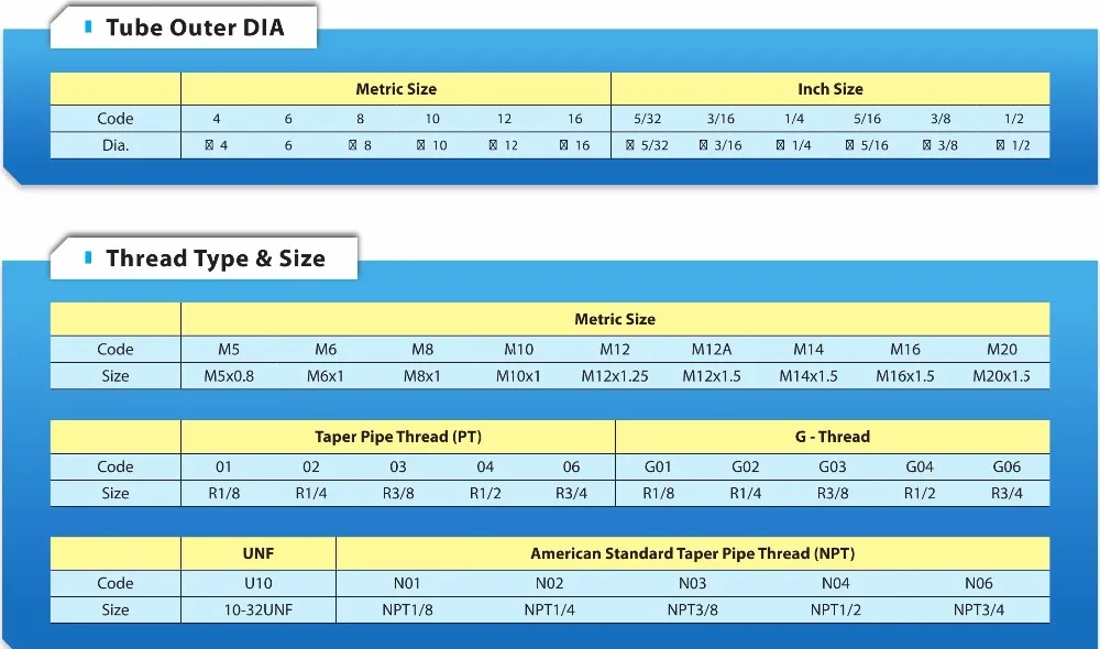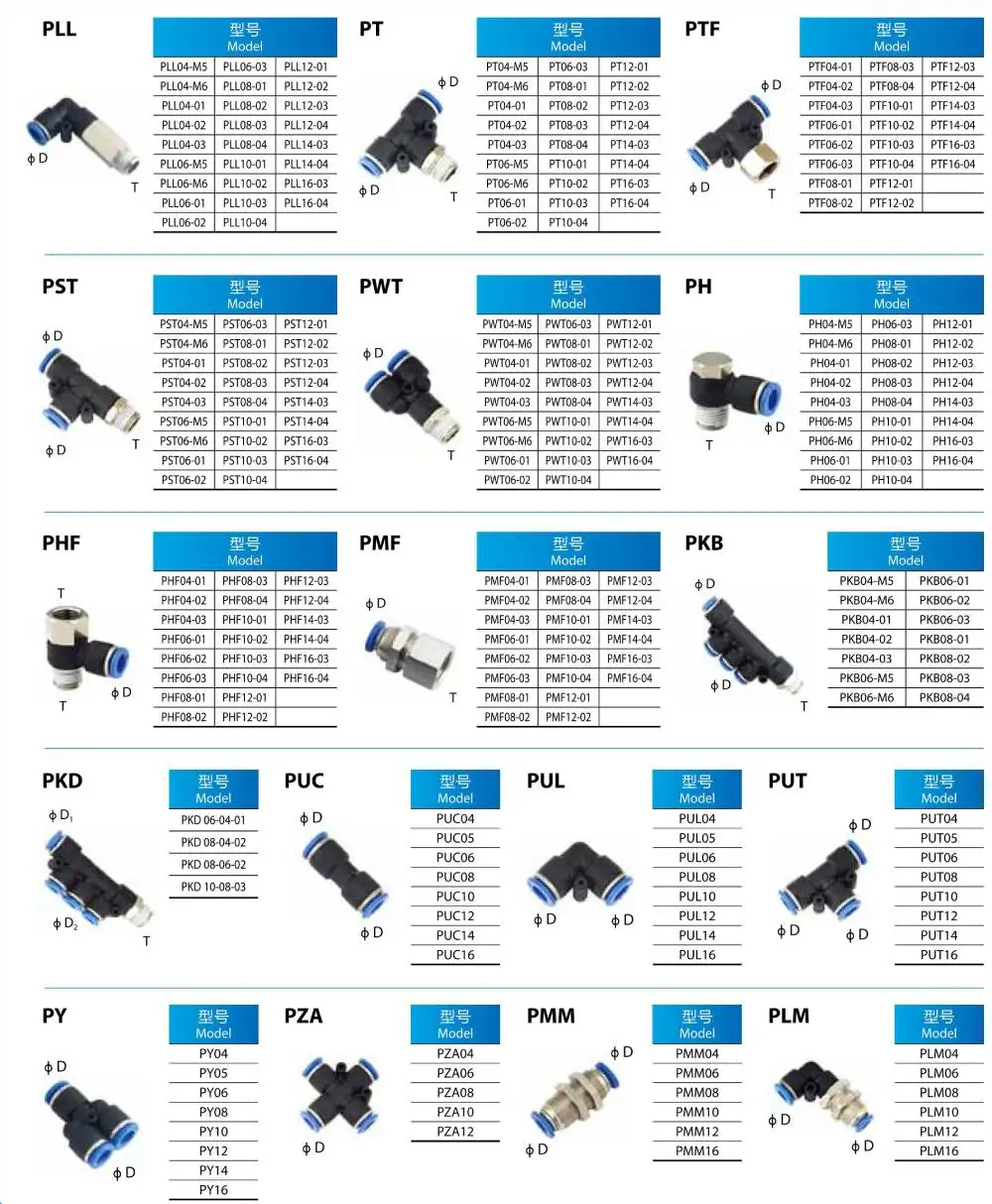 Tube size: 4, 6, 8, 10, 12, 14, 16mm