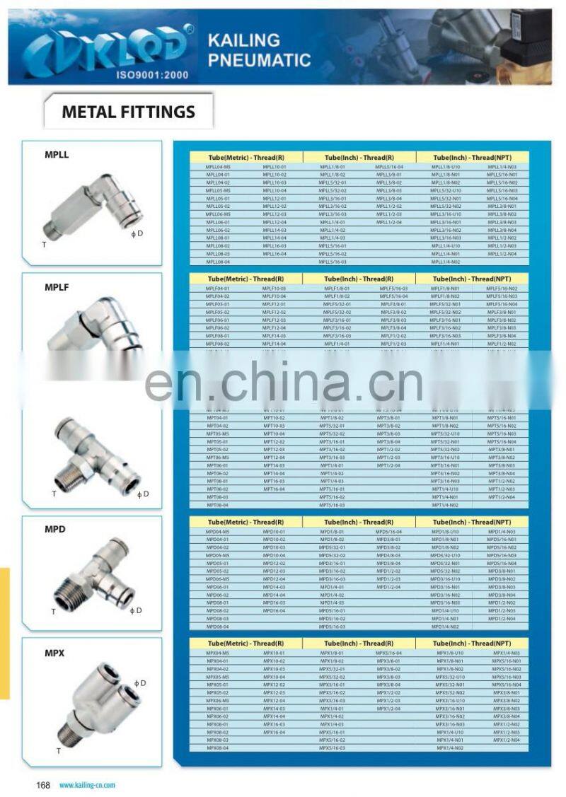 China MPX Series Y Type Male Thread Metal Pneumatic Quick Tube Fitting