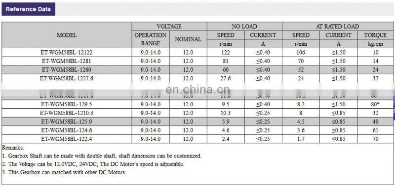 ET-WGM58BL Bldc Gear Motor 12v dc Motor Brushless High Torque Brushless Electric Motor