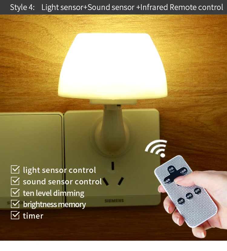 Home > Products > Sensor Light > Upgraded Automatic Light Sensor Sound Sensor Control Night Light Mini 220v UK US EU Plug Led Night Lamp Light