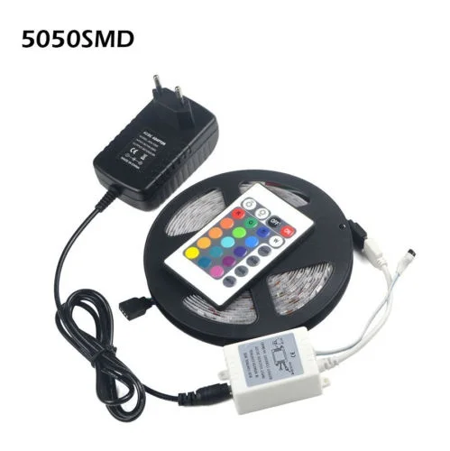 SMD 5050 Led Strip 300 Leds Rgb Color Changing Light With DC12V Adaptor and 24 Keys Remote
