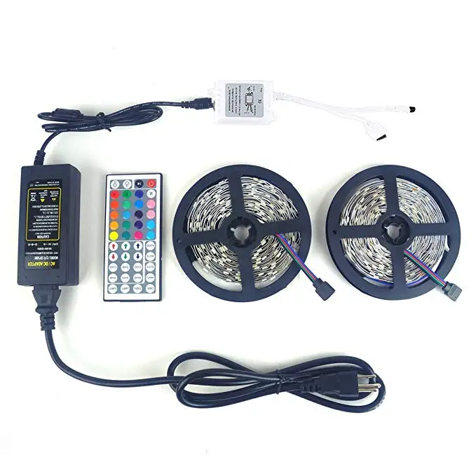 5M 16.4ft RGB Waterproof 300 Led 3528 Smd Strip Light With 44 Keys Remote and Power Adaptor