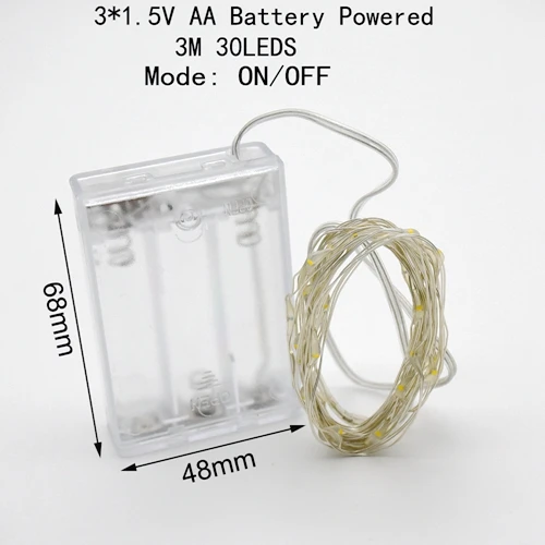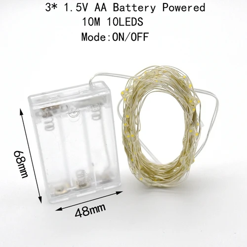 Home > Products > Decoration led light > 2M 3M 5M 10M Battery Silver Wire LED String Lights Holiday Lighting Fairy Garland for Christmas Wedding Party Decoration