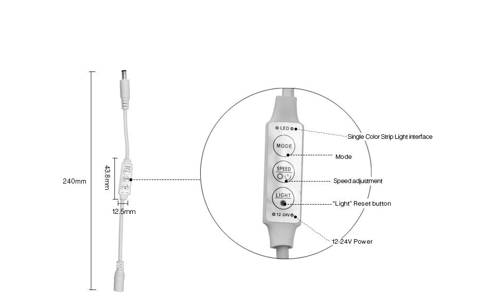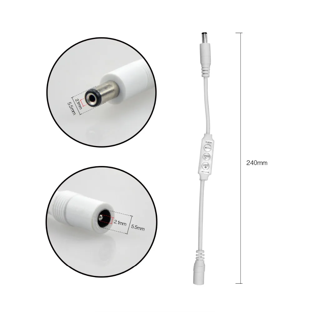 DC 12V 24V Mini LED Dimmer 3 Keys With Dual DC Plug For Single Color Led Strip Lights