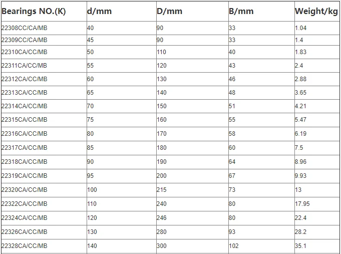 Bearing Price List 110*240*80mm Spherical Roller Bearings 22322CA/W33