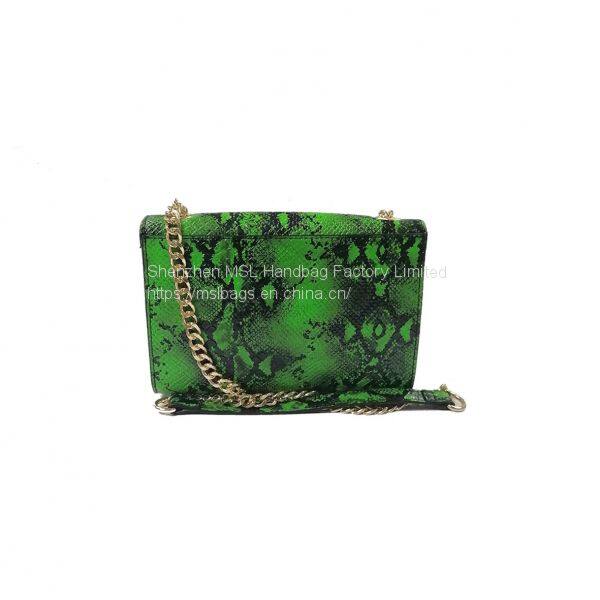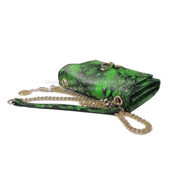 Hot Sale Women Sling Metal Chain Shoulder Handbags High Quality Snake Skin Pattern Crossbody Bags
