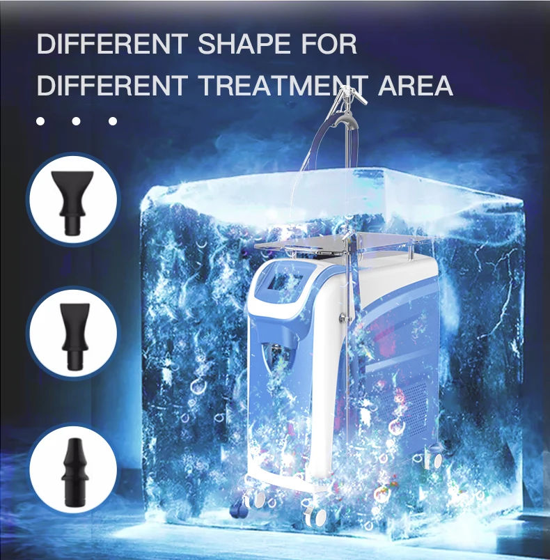 This machine have 3 treatment heads for different treatment area, which can cooling into -20. So the skin will become cold during
