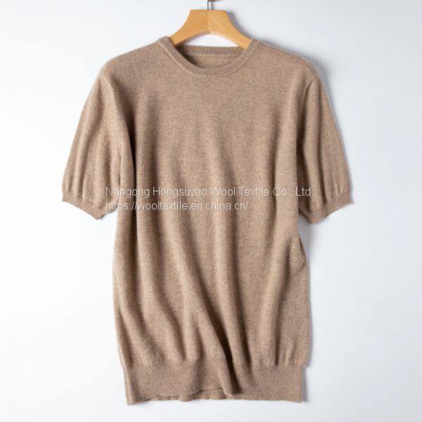 Home > Products > Cashmere Sweater > Autumn Warm Soft Solid Color Fashion Short-Sleeve Pure Cashmere Sweater