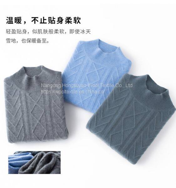 Home > Products > Cashmere Sweater > Best Casual Half Turtleneck Warm Twisted Knitted Cheap Cashmere Pullover Sweater