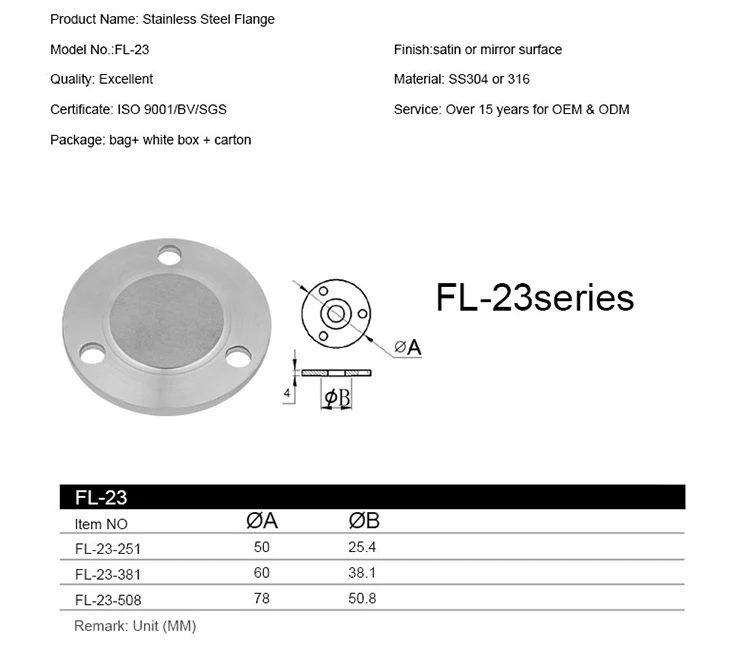 Home > Products > Balustrade Fittings > Sonlam FL-23,Tube Support Flange Seat Stainless Steel Flange Cover for Pipe