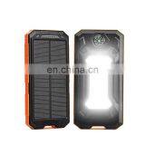 Waterproof Portable 10000mah Solar Mobile Power Charger With LED Lights