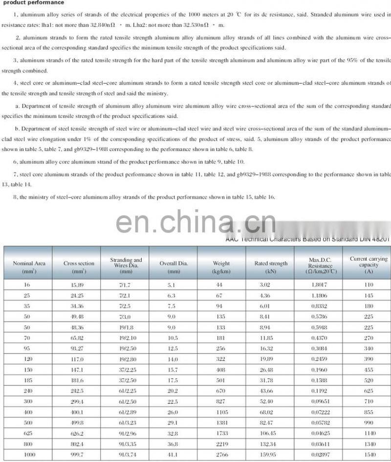 DIN 48201 16mm2 25mm2 35mm2 50mm2 70mm2 120mm2 185mm2 to 1000mm2 All Aluminum Alloy AAAC Bare Conductor Overhead Cable