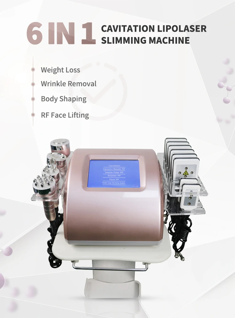 Home > Products > Vacuum & RF Slimming Machine > Latest 6 In1 4d Lipo Cavitation rf Mini Portable 40k Body Laser Slimming Machine
