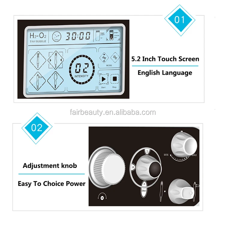 This is newest 4 in 1 facial skin care machine using h2 o2 generator make the purified water into hydrogen and oxygen ions water,the surface of the skin can produce H2 molecules, so that the water molecule cells can quickly penetrate the dermis. So as to achieve the effect of skin rejuvenation and whitening, give you a fresh face !