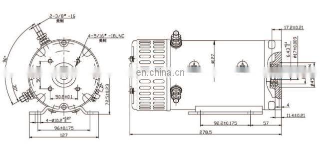 Outline Dimension of Low Noise Hydraulic DC Motor 24 Volt 4KW O.D: 127mm
