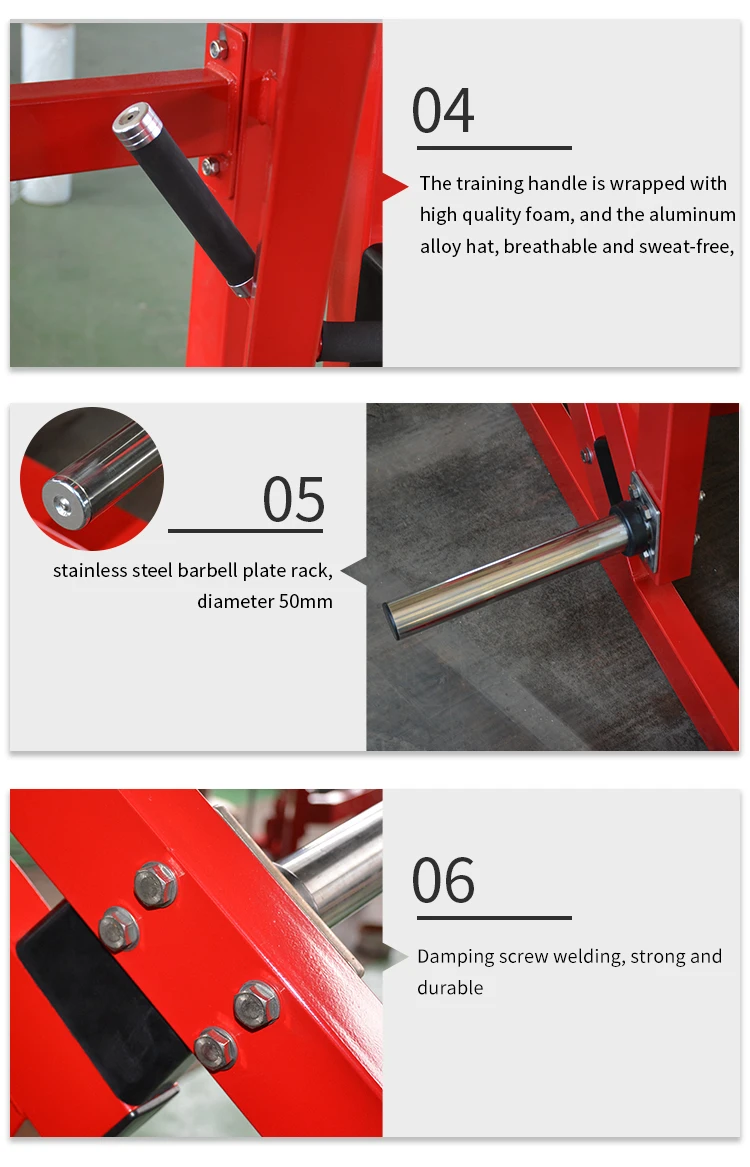 Instruments include: PU cushion, aluminium alloy grip, magnetic bolt, stainless steel screw, self-service cushion adjustment, built-in bearing pulley, multi-strand thick wire rope and other features