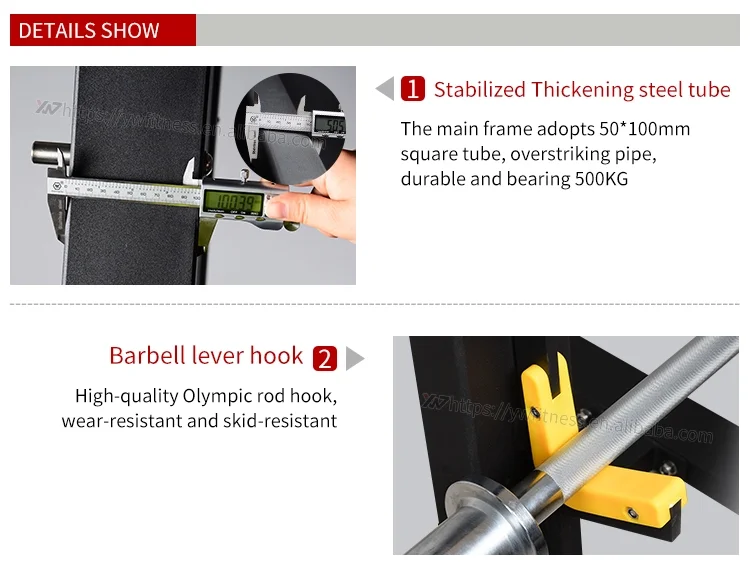 Instruments include: PU cushion, aluminium alloy grip, magnetic bolt, stainless steel screw, self-service cushion adjustment, built-in bearing pulley, multi-strand thick wire rope and other features
