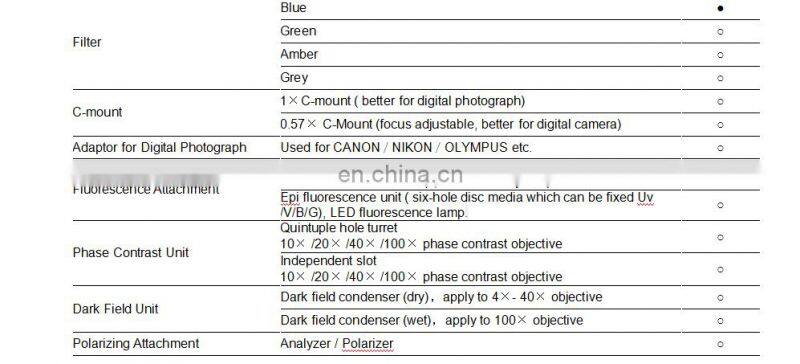Quintuple turret phase contrast unit with 10X/20X/40X/100X infinity plan phase contrast objective for phase contrast and bright field observation.