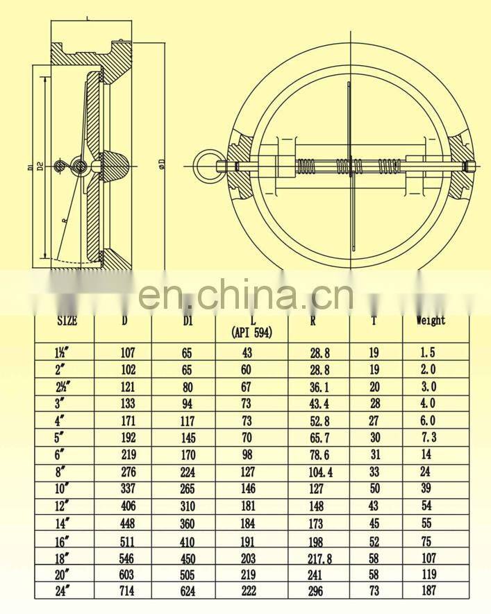 DN200 8 inch stainless steel body SS304 CF8 CF8M double disc check valve
