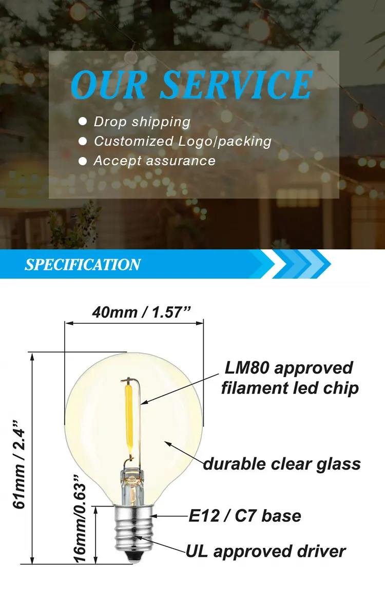 IP45 Waterproof 50ft G40 Led Christmas Lights Outdoor Decoration String Lights