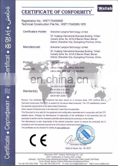 IP65,CRi>80Ra LED tri-proof light 60w IP67