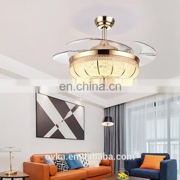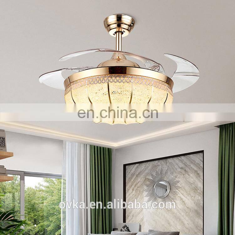 LED Ceiling Lamp Luxury Folding Fan Lights Illuminated Ceiling Fans Takeoff Stealth Ceiling Fan Lights Restaurant Chandelier