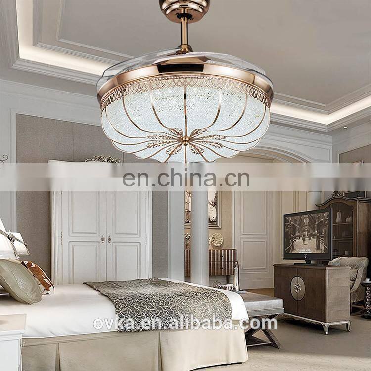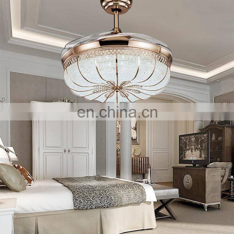 European Luxury Living Room Bedroom Crystal Lamp LED Brand Stealth Ceiling Fan Fan Lights Restaurant Lights