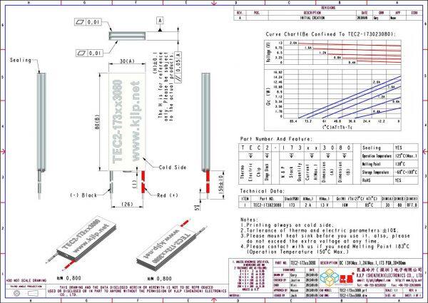TEC2-173 Series (Cold 30x80mm + Hot 30x80mm) Peltier Chip/Peltier Module/Thermoelectric Chip/TEC/Cooler