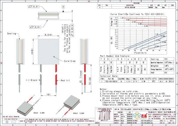 Home > Products > Micro Type > TES1-031 Series (8.3x10mm) Peltier Chip/Peltier Module/Thermoelectric Chip/TEC/Cooler