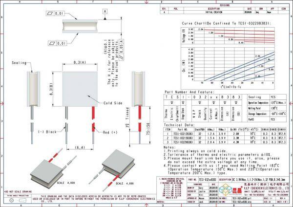 Home > Products > Micro Type > TES1-032 Series (8.3x8.3mm) Peltier Chip/Peltier Module/Thermoelectric Chip/TEC/Cooler