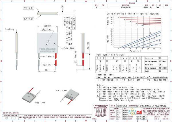TEO1-071 Series (?2.5xS25mm) Peltier Chip/Peltier Module/Thermoelectric Chip/TEC/Cooler