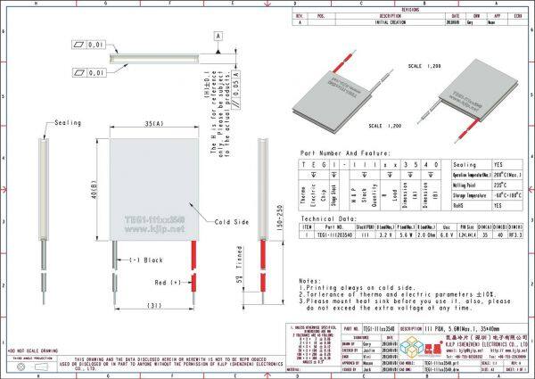 TEG1-111 Series (35x45mm) Peltier Generator/Peltier Chip/Peltier Module/Thermoelectric Chip/TEC/Cooler