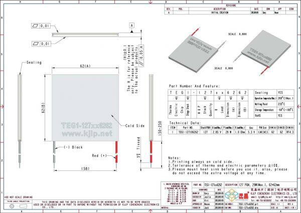 Home > Products > Generator Type > TEG1-127 Series (62x62mm) Peltier Generator/Peltier Chip/Peltier Module/Thermoelectric Chip/TEC/Cooler
