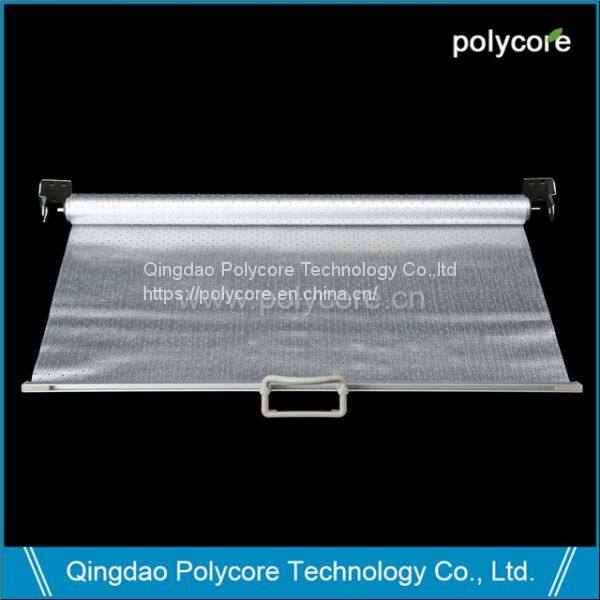 The Aluminzier fabric night curtain material is made of anti-freezing, tear-resistant knitted PET with Aluminized foil in it , night cover can prevent cold air to drop out of showcase meanwhile reflects heat air of store into showcase. Perforated hole in curtain material provide air channel for showcase.