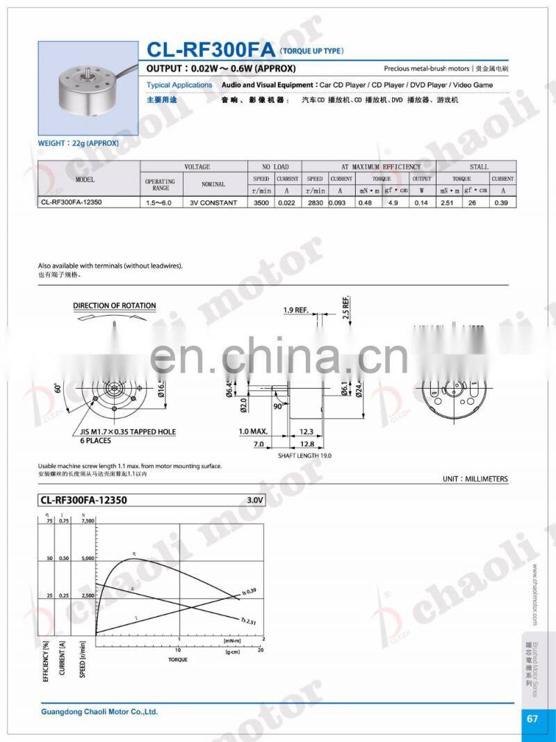 Brushed Motor 3v CL-RF300FA 3500rpm Chaoli dc Motor