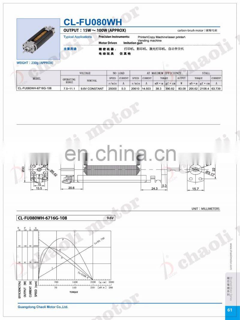 Brushed Motor 9.6v CL-FU080WH Imitation Gun High Speed Chaoli Motor