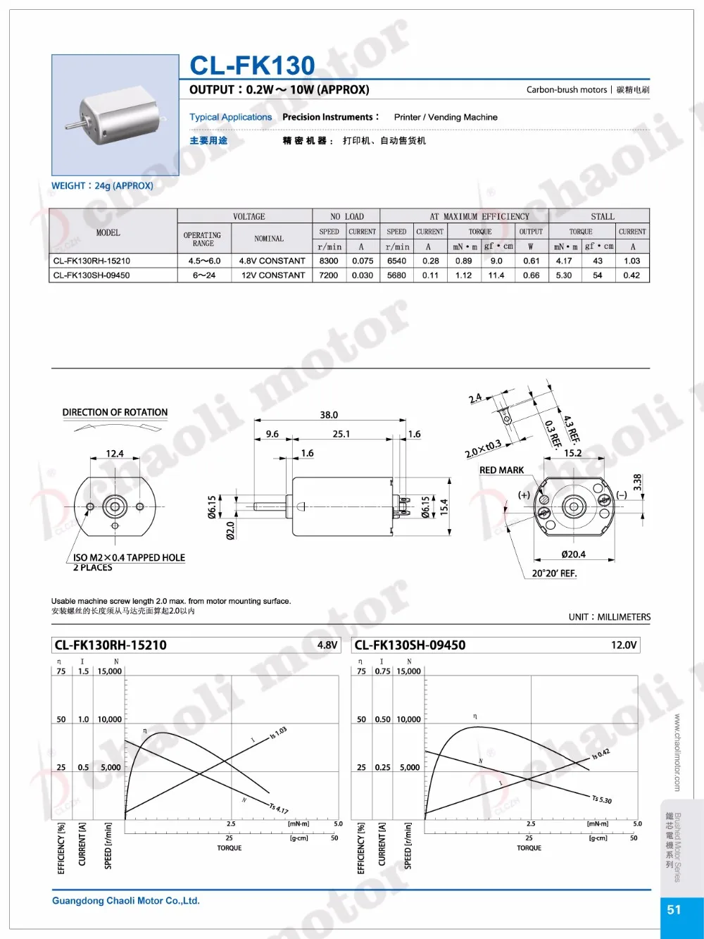 CL-FFM20 Small Electric Toy Motors for Toy Car dc Motors Specifications
